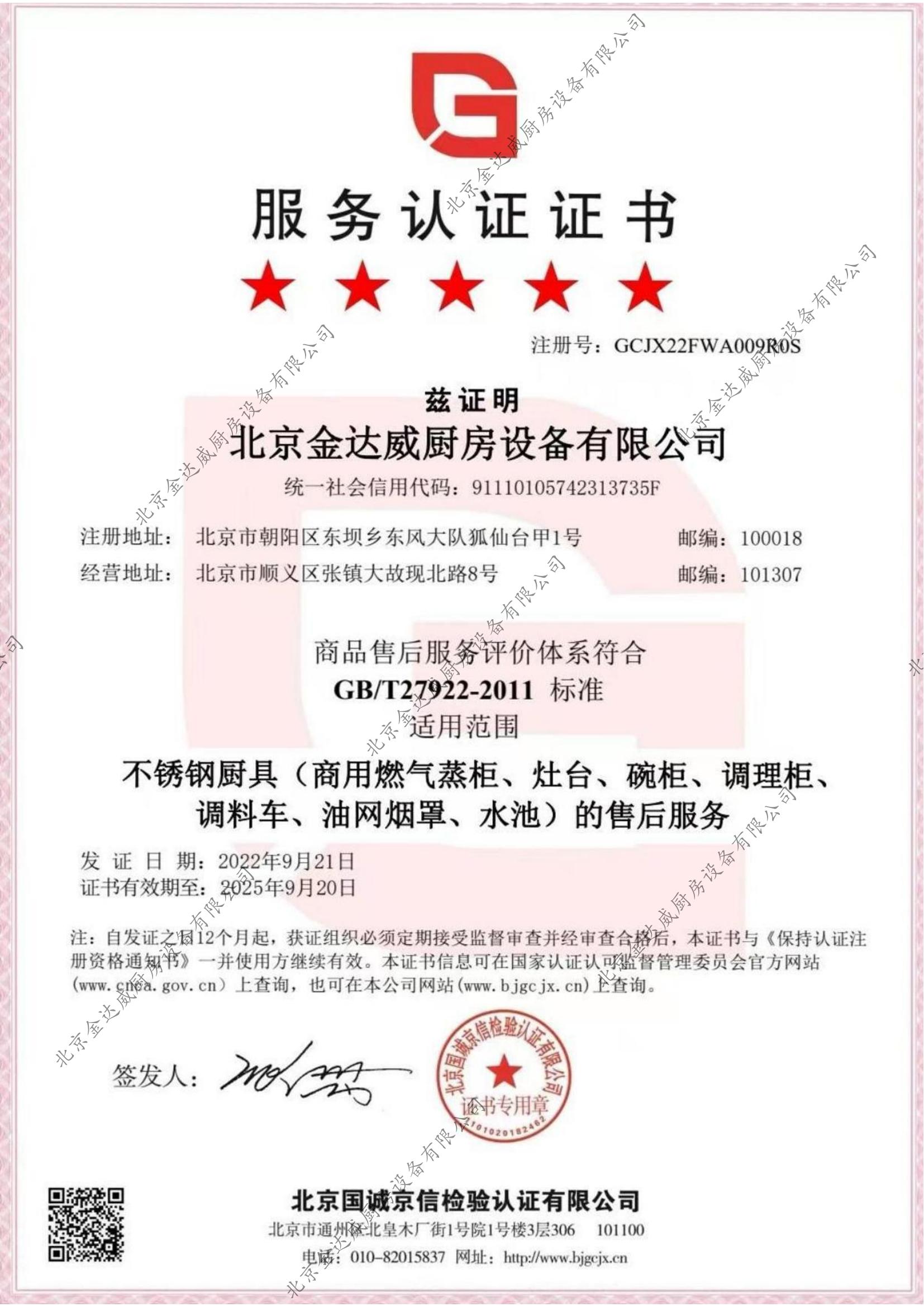 服務(wù)認(rèn)證證書